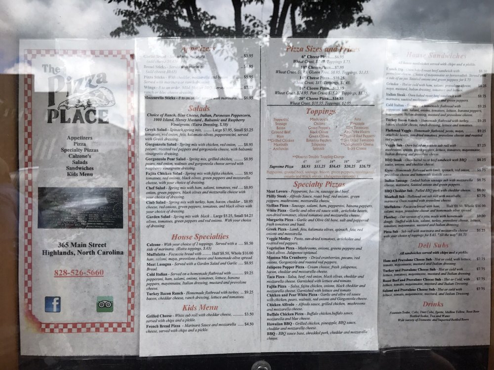 The Pizza Place of Highlands Menu